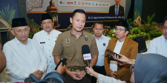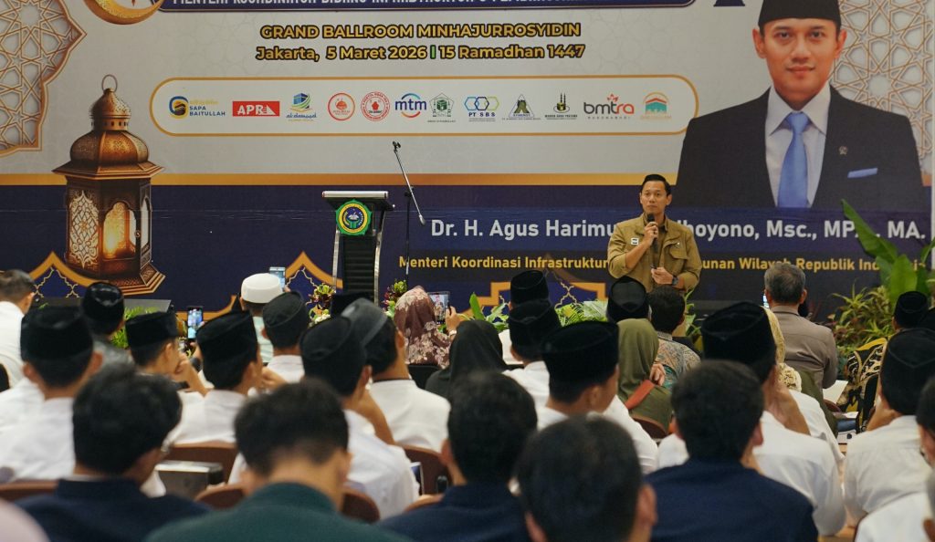 Jakarta (6/3). Menteri Koordinator Bidang Infrastruktur dan Pembangunan Kewilayahan Agus Harimurti Yudhoyono (AHY) menegaskan, pembangunan sumber daya manusia melalui pendidikan menjadi kunci utama dalam menentukan masa depan Indonesia. Hal itu ia sampaikan saat menjadi pembicara dalam acara “Kuliah Umum, Santunan Anak Yatim Pembagian Sembako dan Buka Bersama”, di Pondok Pesantren (Ponpes) Minhajurrosyidin, Jakarta, pada Rabu (5/3).